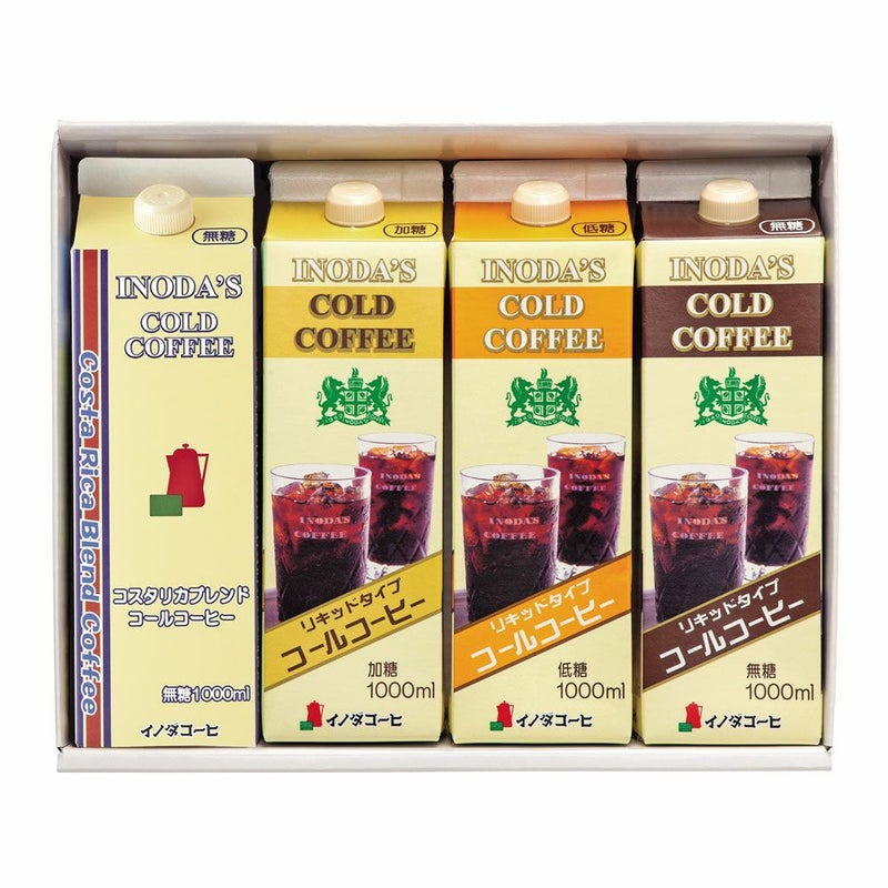 コスタリカブレンドコールコーヒー1本、リキッドコールコーヒー(加糖・低糖・無糖)各1本の合計4本のギフトセットです。